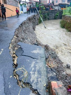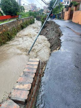 काठमाडौं । काठमाडौँ महानगरपालिका–१४ कोहिनुर हाउजिङ नजिकै करखुसी खोलाको छेउमा पहिरो गई सडक भासिएको छ ।
