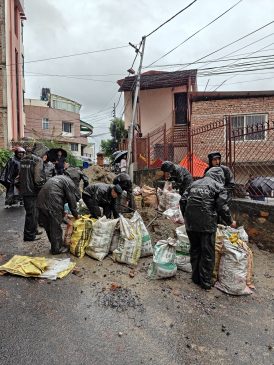 काठमाडौं महानगरपालिकाका अनुसार सम्भावित जोखिमयुक्त स्थानहरूको अवलोकनमा प्रतिनिधिहरू खटिएका छन् भने थप क्षति रोक्न महानगर प्रहरी बल र विपद् व्यवस्थापन विभागको समन्वयमा बोरा र ग्राभेल प्रयोग गरी नदी कटान रोक्ने प्रयास भइरहेको छ ।