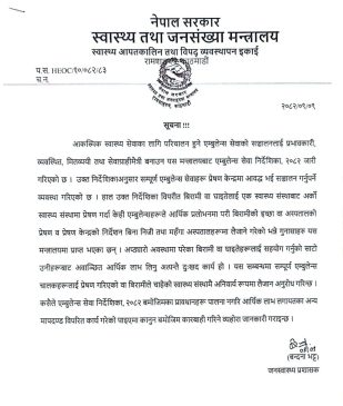 निर्देशिका विपरीत गरिएका कार्य तत्काल बन्द गर्न एम्बुलेन्स चालकलाई मन्त्रालयको निर्देशन