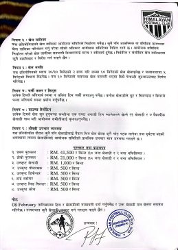 क्वालालम्पुर हिमालय एफसीद्वारा आयोजित प्रतियोगिताको तयारी पूरा भएको जानकारी दिँदै आयोजकले आइतबार (फेब्रुअरी ८) क्वालालम्पुरस्थित होटल ग्राण्ड कण्टिनेन्टलमा विशेष कार्यक्रम आयोजना गरी खेलतालिका (टाइसिट) सार्वजनिक गरेको हो।