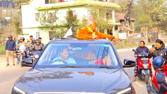 सार्वजनिक तस्बिर तथा प्रत्यक्षदर्शीका अनुसार उम्मेदवार सिंह सवारी साधनको सनरूफ (छतको भाग) बाट बाहिर निस्केर समर्थक तथा स्थानीयसँग हात हल्लाउँदै घरदैलो कार्यक्रम गरिरहेका देखिन्छन्।