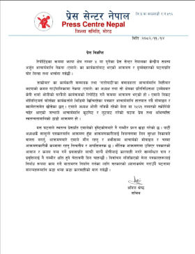 प्रेस सेन्टरले भौतिक आक्रमणको माध्यमबाट पत्रकारको आवाज र कलम बन्द गर्ने प्रयास नगर्न चेतावनी दिँदै घटनामा संलग्नहरूलाई तत्काल कानुनी दायरामा ल्याउन माग गरेको छ। साथै, निर्वाचनको समयमा पत्रकारहरूलाई निर्बाध र सुरक्षित रूपमा काम गर्ने वातावरण निर्माण गर्न सरकारसँग जोडदार माग गरिएको छ।