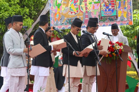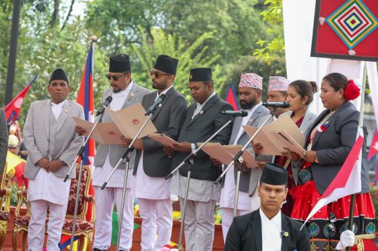 नवनियुक्त प्रधानमन्त्री बालेन शाहसहित मन्त्रीहरुले पद तथा गोपनीयताको शपथ लिएका छन् । शुक्रबार राष्ट्रपति रामचन्द्र पौडेलबाट उनीहरुले पद तथा गोपनीयताको शपथ लिएका हुन् । शपथ ग्रहण समारोहमा १०८ जना बटुकले स्वस्तिक वाचन, १०७ बौद्ध लामा गुरुहरूले मंगल वाचन र सात जना ब्राह्मणले शंखनाद गरेका थिए ।
