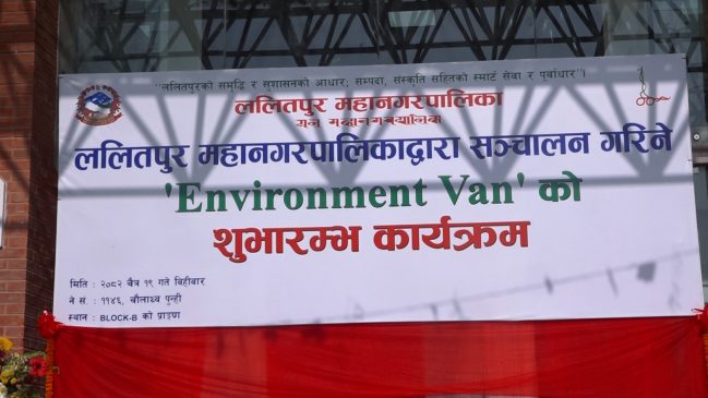 ललितपुर महानगरपालिकाले बिहीबारदेखि वातावरण प्रहरी एन्बुलेन्स संचालनमा ल्याएको छ । महानगरका मेयर चिरीबाबु महर्जनले एक विशेष कार्यक्रमका बिच उक्त एन्बुलेन्सको शुभारम्भ गरेका हुन् ।
