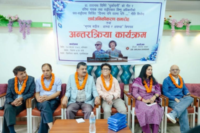 काठमाडौँ. गीतकार तथा गजलकार डा। तारानाथ घिमिरे ‘धुर्कापानीु को नयाँ गीत ‘दिनमा पनि, रातमा पनि’ सार्वजनिक भएको छ । शनिबार काठमाडौँमा साहित्यकार डा. नवराज लम्साल, डा. विष्णु दाहाल, सङ्गीतकार राजु सिंहलगायतले गीतको भिडियो सार्वजनिक गरेका हुन् । विष्णु अधिकारीको सङ्गीत र स्वर रहेको गीतमाथि डा। गीता त्रिपाठी, डा. विष्णु दाहालले बोलेका थिए । उनीहरूले गीत मार्मिक रहेको र गीतले दुस्खको कथा भनेको बताए । प्रेम, जीवन र प्रेमका दुखद् पक्ष गीतमा आएकाले मार्मिक बनेको वक्ताहरूको टिप्पणी थियो । गीतकार धुर्कापानीले नेपाली सुगम सङ्गीतमा केही गरौँ भन्ने हुटहुटीले गीत तयार पारेको सुनाए । प्रमुख अतिथि डा. नवराज लम्सालले…