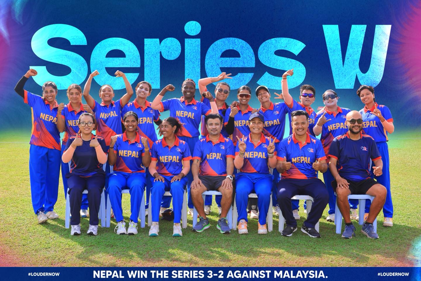 काठमाडौं । अन्तर्राष्ट्रिय टी–२० शृङ्खलाको दोस्रो खेलमा नेपालले मलेसियामाथि जित हासिल गरेको छ । शनिबार मलेसियाको बायुमास ओभलमा सुरुमा ब्याटिङ गरेको घरेलु टिम मलेसियामाथि नेपालले ६ विकेटको जित निकालेको हो । पाँच खेलको अन्तर्राष्ट्रिय टी–२० शृङ्खलाको दोस्रो खेलमा नेपाल विजयी भएसँगै सिरिजमा १–१ को बराबरी भएको छ । मलेसियाले दिएको ९२ रनको लक्ष्य नेपालले १६.२ ओभरमा चार विकेटको क्षतिमा ९३ रन बनाउँदै पूरा गरेको थियो । नेपालको जितमा पूजा महतोले ३९ बलको सामना गर्दै ३९ रन जोड्न सफल भइन् । कप्तान इन्दु बर्माले २१ बलमा २७ रन जोडिन्। ओपनर आइना…